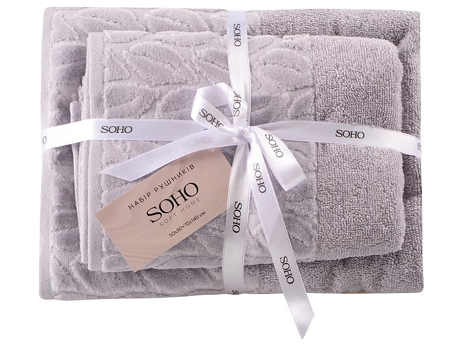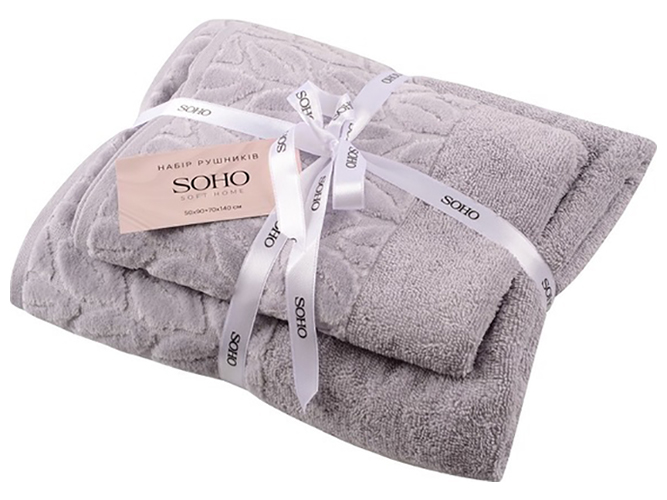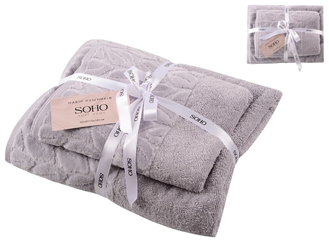 Набор полотенец Soho, 50x90+70x140см, хлопок 100%, Leaves Light Gray, 8690069271439