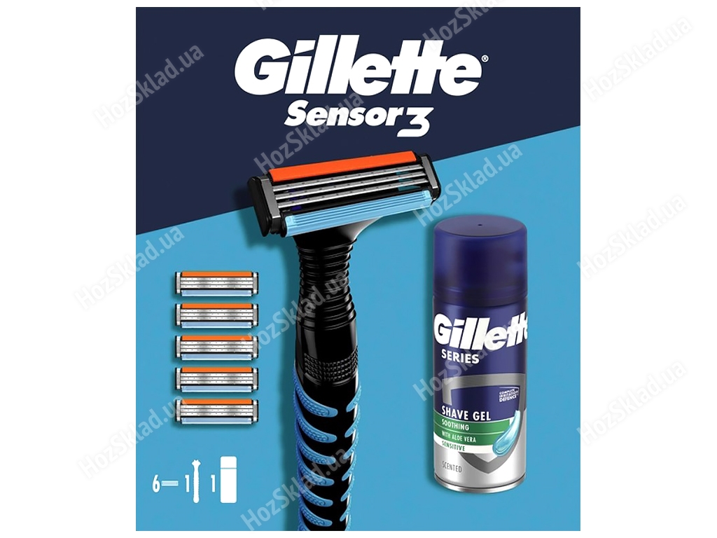Подарочный набор Gillette Sensor 3 (Бритва+6 картриджа+ Гель для бритья Series, 75мл)