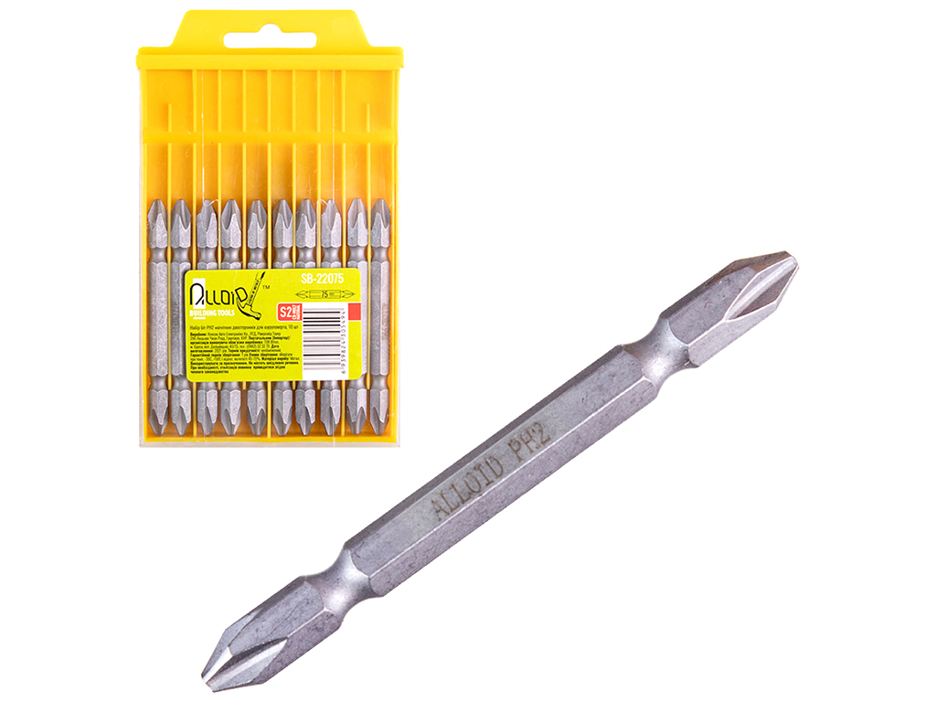 Набор бит магнитных двухстор. для шуруповерта Alloid, PH2 75мм, S2, SB-22075 (цена за набор 10шт)