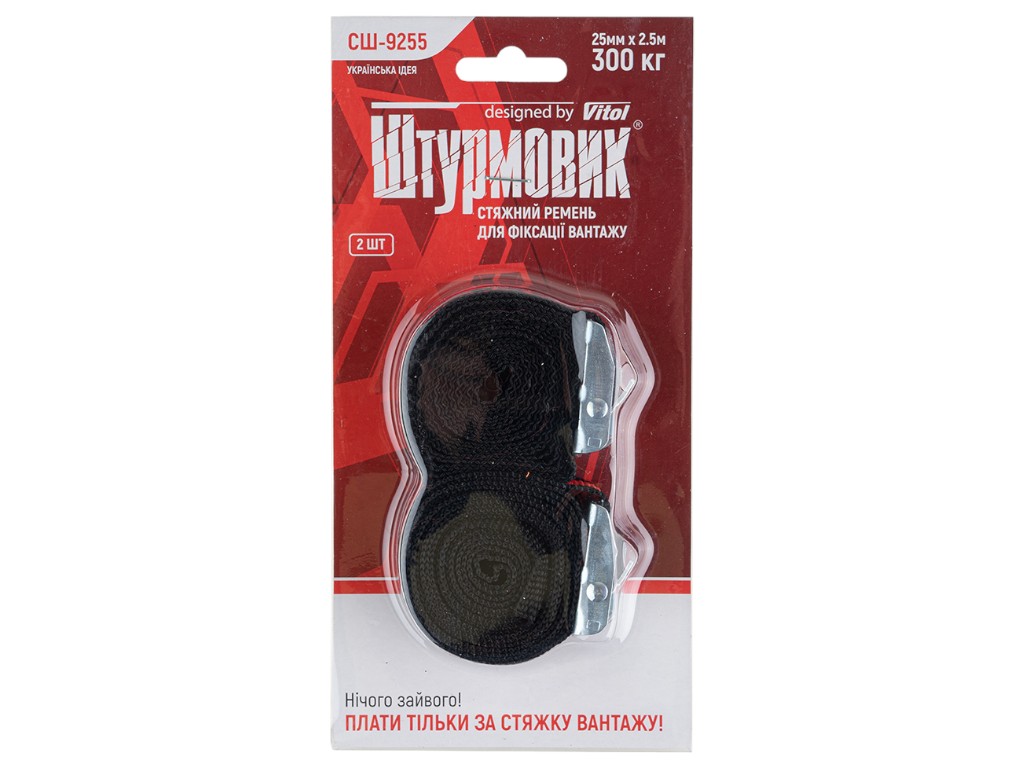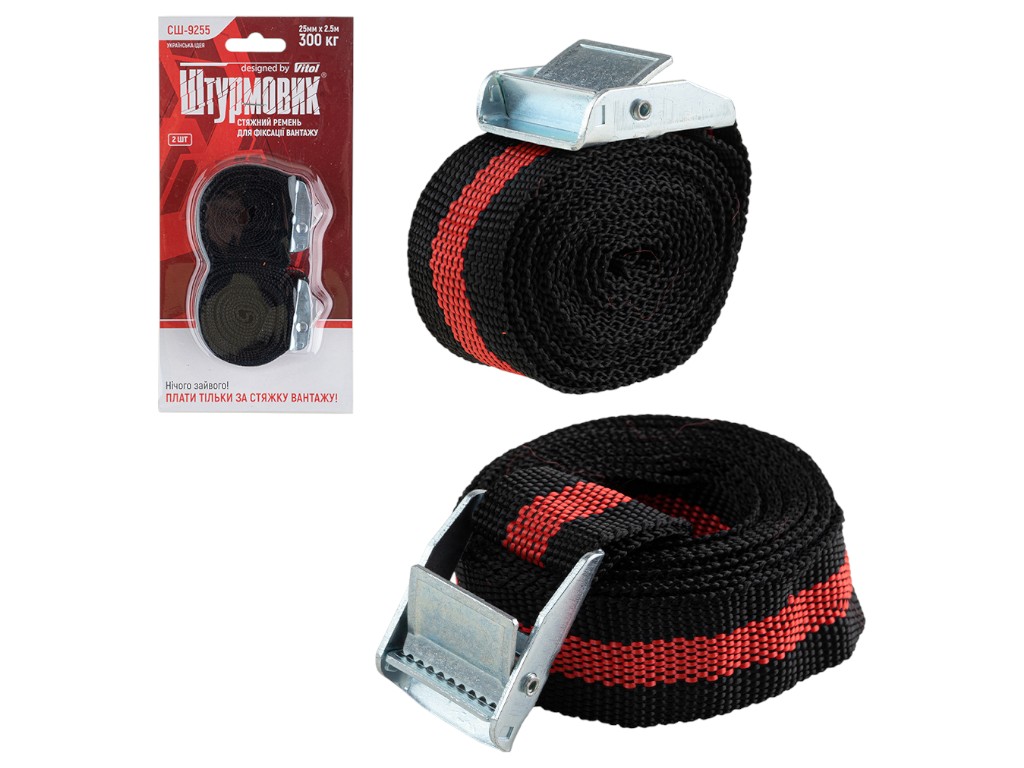 Стяжка груза, нагрузка 300кг, полиэстер, 25мм × 2,5м, цвет черный с красным (цена за 2шт)