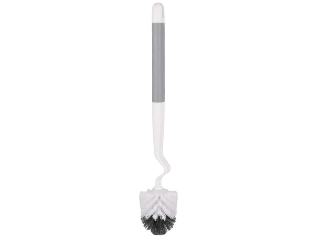 Ершик для туалета высотой 53 сантиметра сочетает в себе простоту формы и продуманную конструкцию, создавая аккуратный и функциональный аксессуар для ванной комнаты. Полностью выполненный из прочного пластика, он устойчив к влаге и моющим средствам, что делает его подходящим для повседневного использования. Квадратная подставка с серым основанием стоит уверенно даже на гладкой плитке и не скользит. Внутри расположен закрытый отсек, который собирает остатки воды после уборки, сохраняя чистоту вокруг унитаза. Подставка легко разбирается — верхняя часть снимается для промывки, а внутренний контейнер можно ополоснуть под струей воды. Белый корпус с серым ободком выглядит сдержанно и аккуратно, дополняя интерьер ванной в современном или минималистичном стиле. Изогнутая форма ручки — отличительная особенность этой модели. Она помогает проводить уборку без лишнего наклона и дает возможность очистить внутренние изгибы унитаза, в том числе труднодоступную зону под ободком. Ручка имеет мягкое нескользящее покрытие, приятное на ощупь даже при влажных руках, а отверстие на верхнем конце дает возможность подвесить ершик на крючок. Щетина выполнена из пластика средней жесткости, что позволяет удалять известковый налет и загрязнения без риска повреждения керамической поверхности. Головка щетки съемная, её можно заменить при износе, не меняя весь комплект. При сравнении с другими моделями, этот вариант выделяется продуманным механизмом крепления щетки и устойчивым основанием, которое не опрокидывается при движении. Мягкая вставка на дне подставки защищает плитку от царапин. Поддерживать чистоту просто: щетку рекомендуется промывать под струей воды после каждого использования, а подставку очищать 1–2 раза в неделю с мыльным раствором. Для дезинфекции подходит уксусная или содовая вода. Ершик поставляется в цветной коробке, подходящей для аккуратного хранения и транспортировки. Это изделие удобно как для домашнего применения, так и для использования в офисах, гостиницах и других помещениях с высокой проходимостью. Бело-серое сочетание подчеркивает опрятность и визуальную чистоту пространства, а продуманная форма делает изделие практичным элементом обстановки, который не требует лишнего ухода.