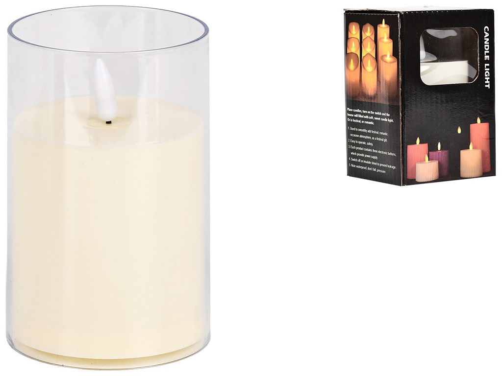 Свеча декоративная светодиодная дополнит современный интерьер и создаст уютную атмосферу. Светодиодная свеча светит приятным и абсолютно безопасным светом. Питание: батарейки 3шт х ААА (не входят в комплект). Упаковка: цветная коробка.