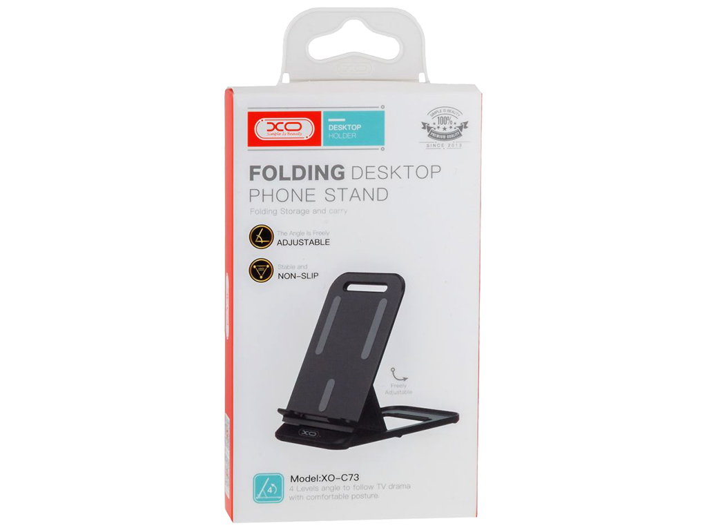 ?Настольный держатель XO C73 станет полезным приобретением для тех, кто часто использует смартфон для просмотра фильмов, проведения прямых трансляций и совершения видео звонков. Аксессуар поможет устойчиво расположить смартфон диагональю до 7 под необходимым углом в горизонтальном или вертикальном положении, например, на столе. Благодаря компактным размерам и небольшому весу его можно использовать не только дома, но и брать с собой на учебу или работу в офис. Модель выполнена в практичном, современном дизайне, изготовлена из прочного, стойкого к износу и повышенным нагрузкам ABS пластика. Конструкция подставки состоит из панели-держателя с нижней подставкой и основания, которые соединены шарниром. Предназначенная для установки смартфона панель подпирается с обратной стороны фиксатором, который может фиксироваться в 4 положениях, позволяя регулировать угол наклона. Силиконовые накладки держателя предотвратят соскальзывание гаджета и защитят его корпус от потертостей. В полностью разложенном виде размеры аксессуара составят 67x127x117мм, в сложенном - 67x127x18мм.