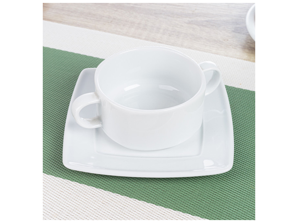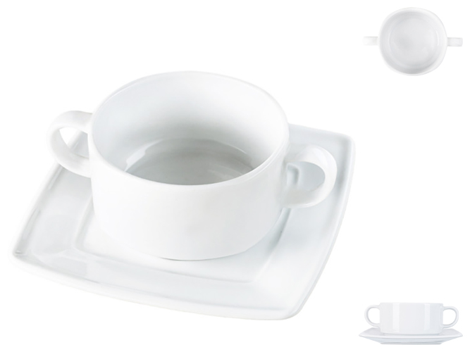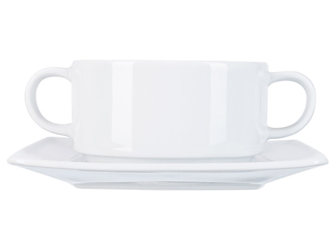 Бульонница с блюдцем прекрасно подойдет для сервировки праздничного стола и ежедневного использования. Можно мыть в посудомоечной машине. Подходит для использования в микроволновой печи. Упаковка: техтара.