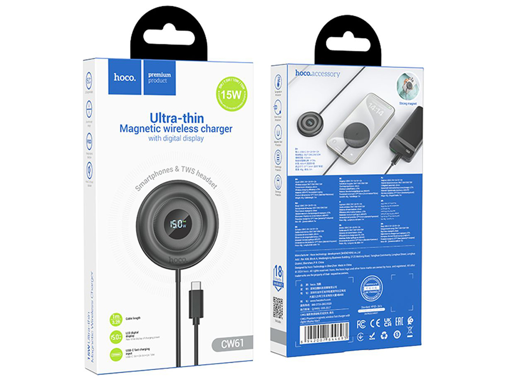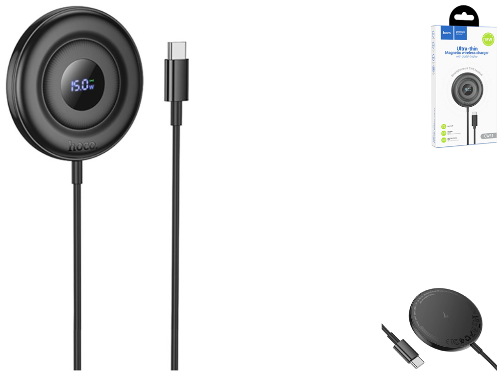 Беспроводное Зарядное Устройство Hoco CW61 Magnetic 15W LED Display Цвет Черный