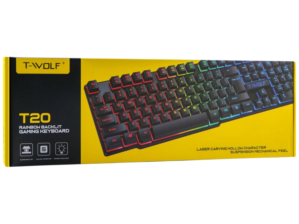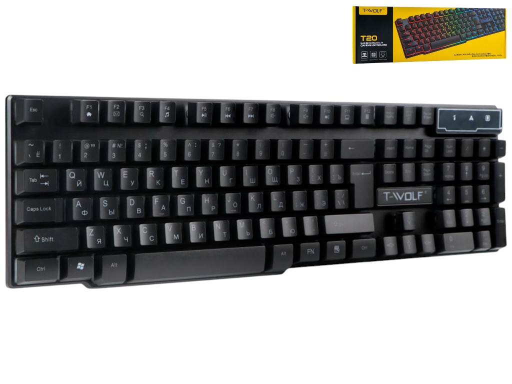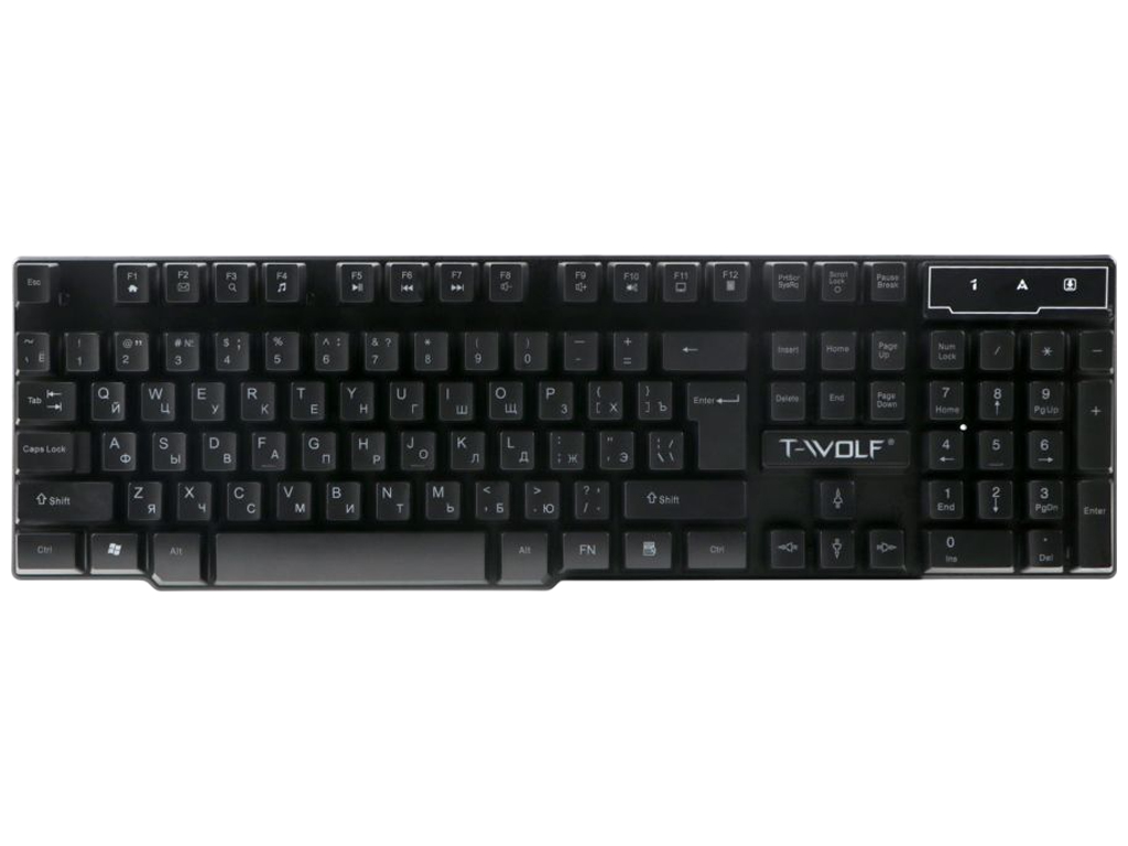 Клавиатура TWolf T20, проводная, мембранная, 104 клавиши, 460×150×37мм, цвет черный