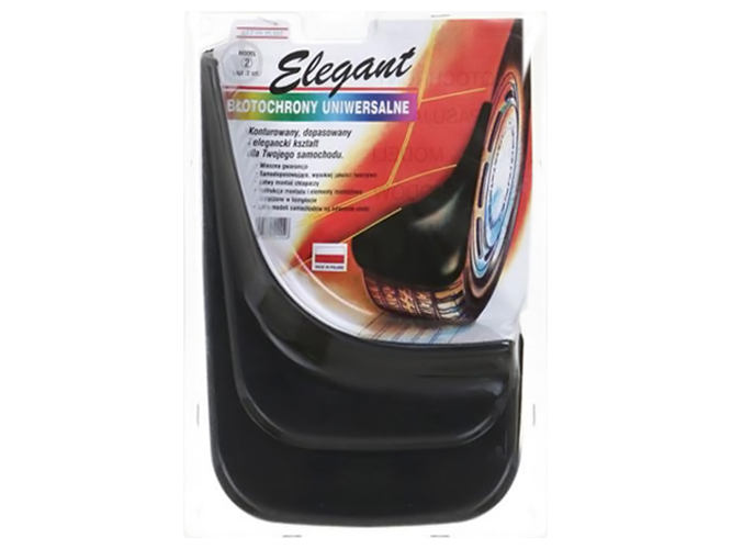 Универсальные брызговики Elegant являются практичным решением для установки на автомобили отечественного и иностранного производства. Брызговики изготавливаются из эластичной и прочной резины, что обеспечивает их надёжность. Прочная резина не даст брызговикам растрескаться от воздействия погодных условий, а эластичность изделия значительно уменьшает вероятность того, что брызговики повредятся, если вы случайно заденете ими препятствие. Брызговики имеют простой привлекательный дизайн и отлично выполняют свои функции. Они предназначены для защиты автомобиля от проявлений плохой погоды и дорожной грязи, предотвращая попадание брызг воды на кузов автомобиля и защищая его от песка и камней, способных повредить лакокрасочное покрытие Вашего автомобиля.