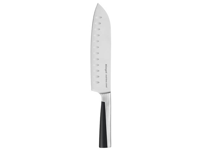 Нож сантоку Ringel Expert из нержавеющей стали обладает высокой прочностью и корозостойкостью с сатиновой полировкой. Твердость стали по шкале Роквелла - 53. Эргономичная ручка из нержавеющей стали со стильной пластиковой вставкой. Режущая кромка ножа: гладкая. Цвет: стальной/черный. Длина лезвия: 17,7см.