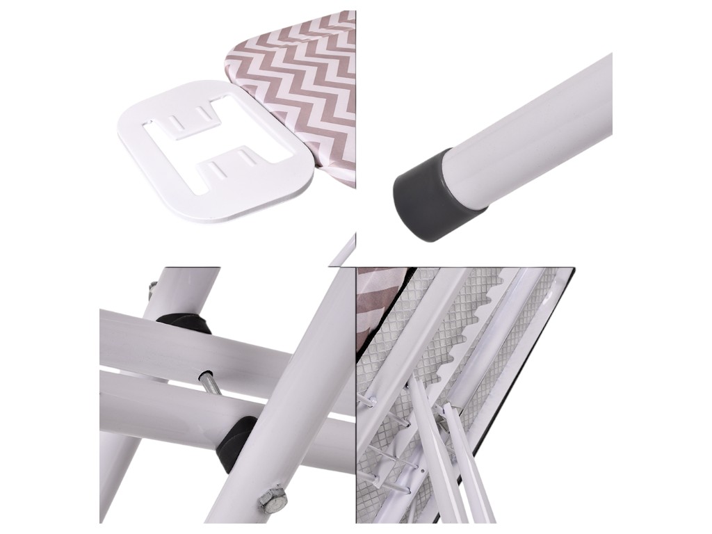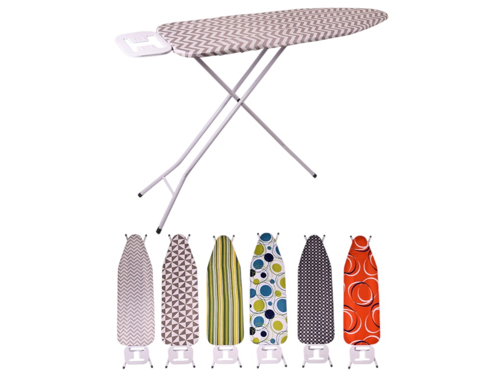 Применяется для глажки белья и одежды в бытовых условиях. Рабочая поверхность обтянута тканевым чехлом, устойчивым к высоким температурам. Конструкция выполнена из металла с пластиковой подставкой под утюг и устойчивыми ножками. Регулируется по высоте, обеспечивая удобство при длительной работе. Поставляется с чехлами различных дизайнов.