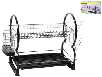 Cушилка для посуды - неотъемлемый предмет современной кухни, удобная в использовании и гармонично подходит для любого интерьера. Оснащена дополнительными отделениями для сушки вилок, ложек и ножей. Также в комплект входит специальный поднос к сушке, который помогает легко и быстро избавиться от воды. Состоит из двух ярусов. Размер: 46х29х34 см.