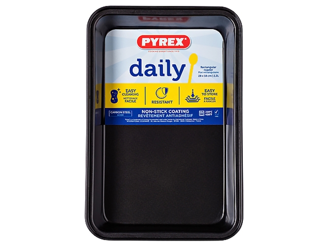 Форма Pyrex Daily для выпечки/запекания, 28x18см, 2,2л. Материал: углеродистая сталь с антипригарным покрытием. Форма: квадратная. Цвет: черный. Использовать при при температуре 230°С.