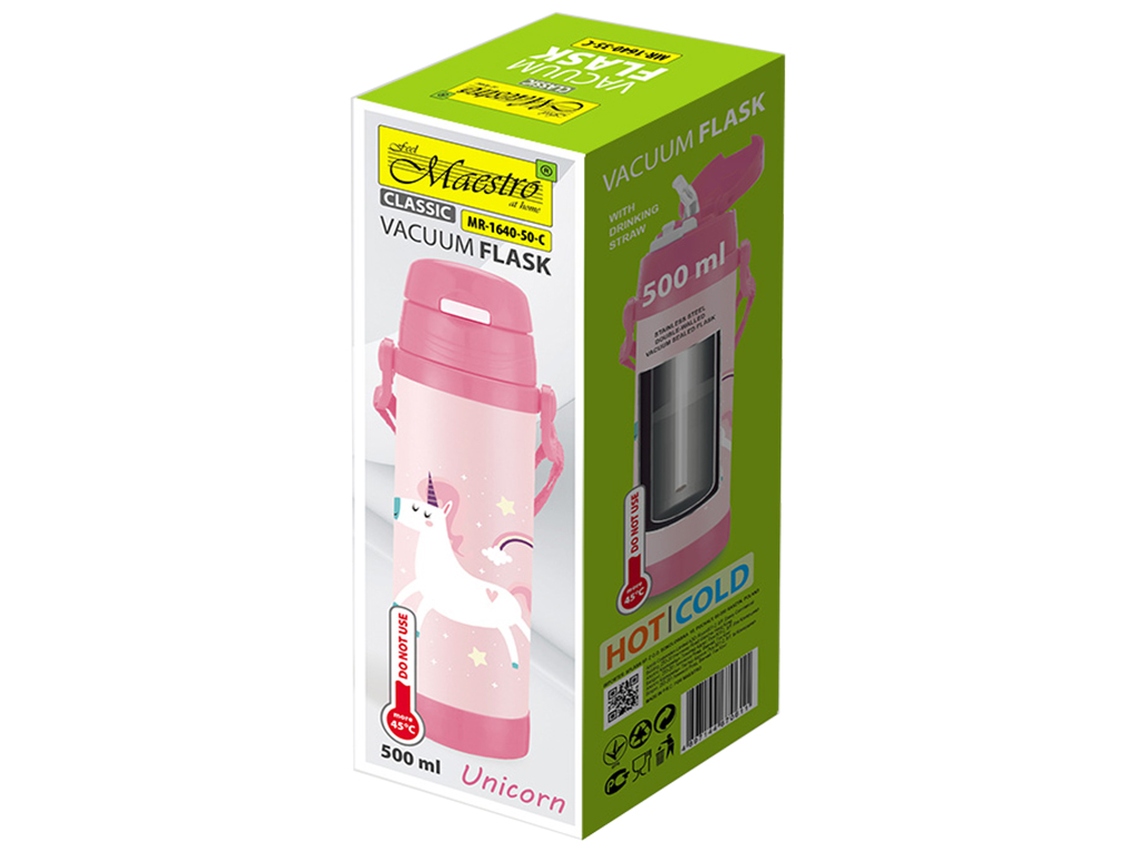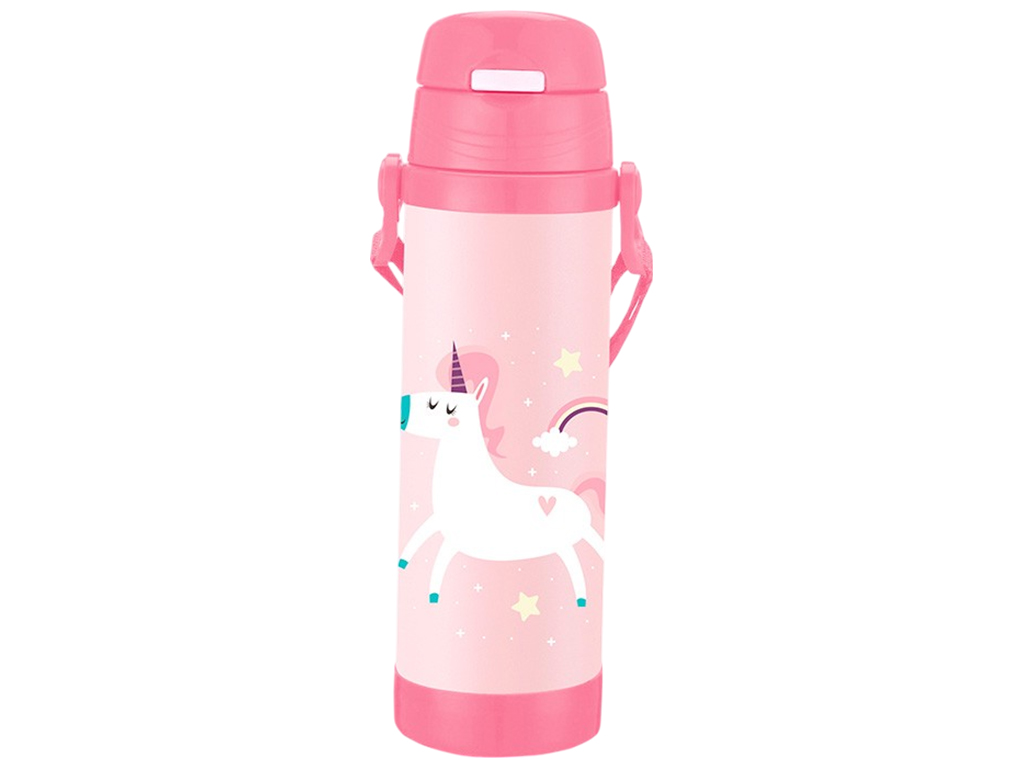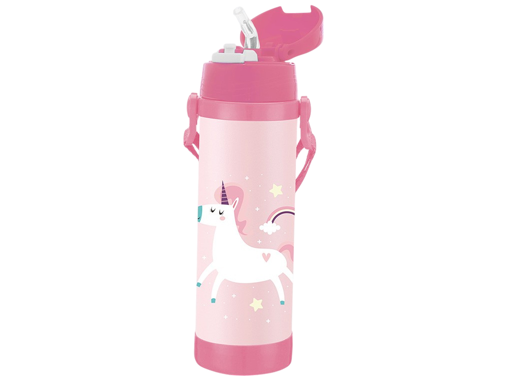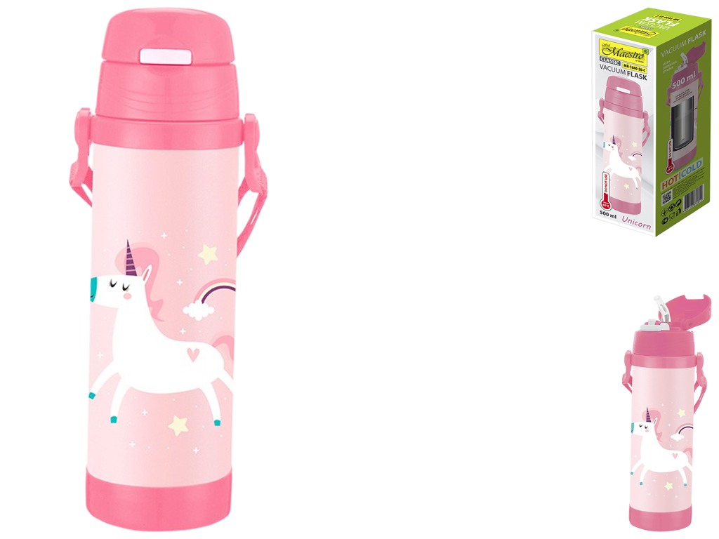 Термос детский Maestro Unicorn, 500мл, силиконовая трубочка, нержавеющая сталь, цвет розовый