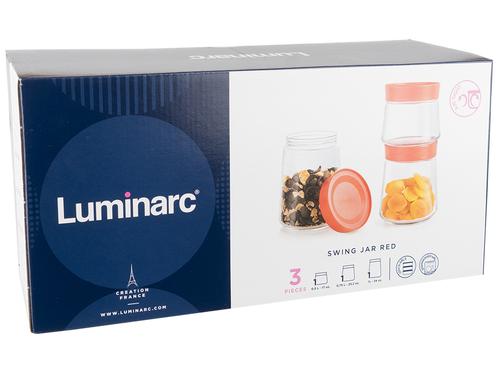 Набор банок для сыпучих Luminarc Swing Jar Red 3 предмета, красная крышка (500мл, 750мл, 1л) 79612