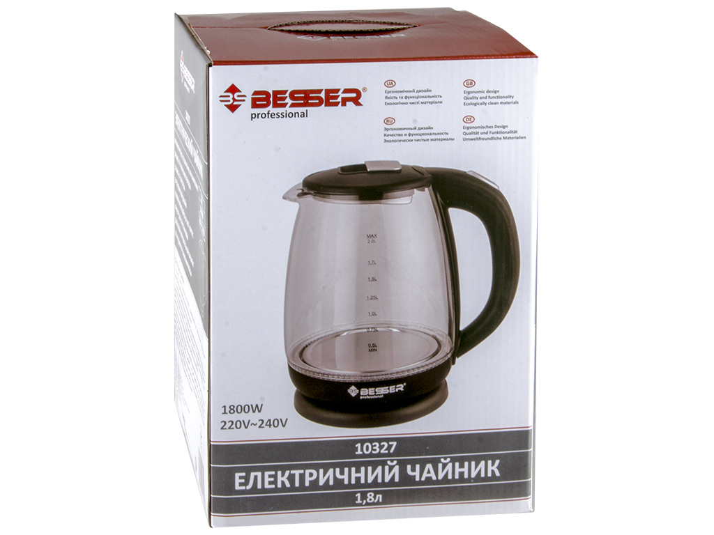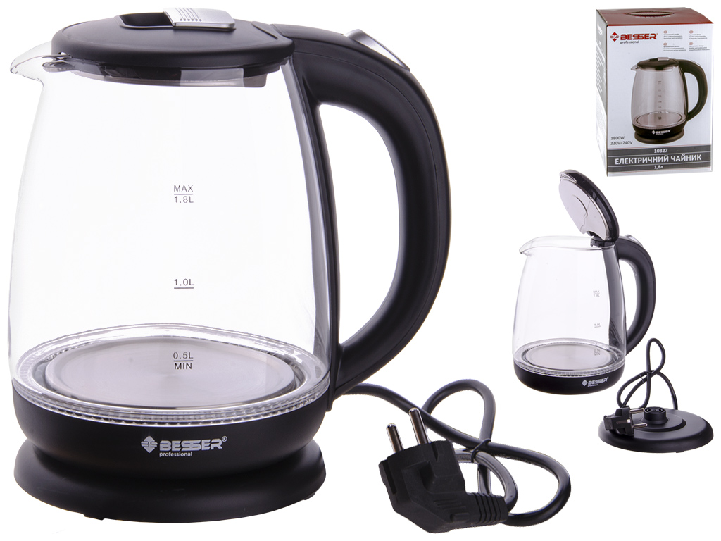 Чайник электрический стеклянный Besser Professional фильтр, индикатор, дисковый нагреват. 1,8л 1800W