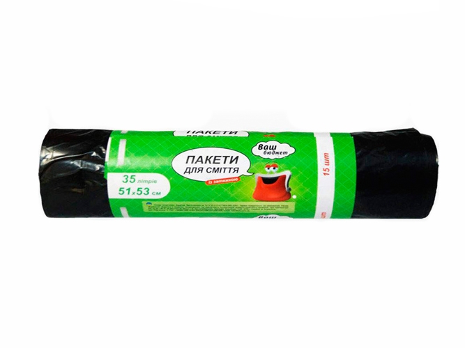 Пакеты для мусора с затяжками Ваш Бюджет 35л 15шт