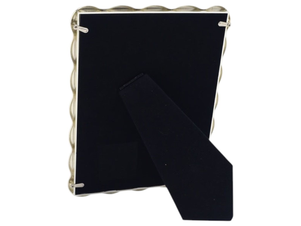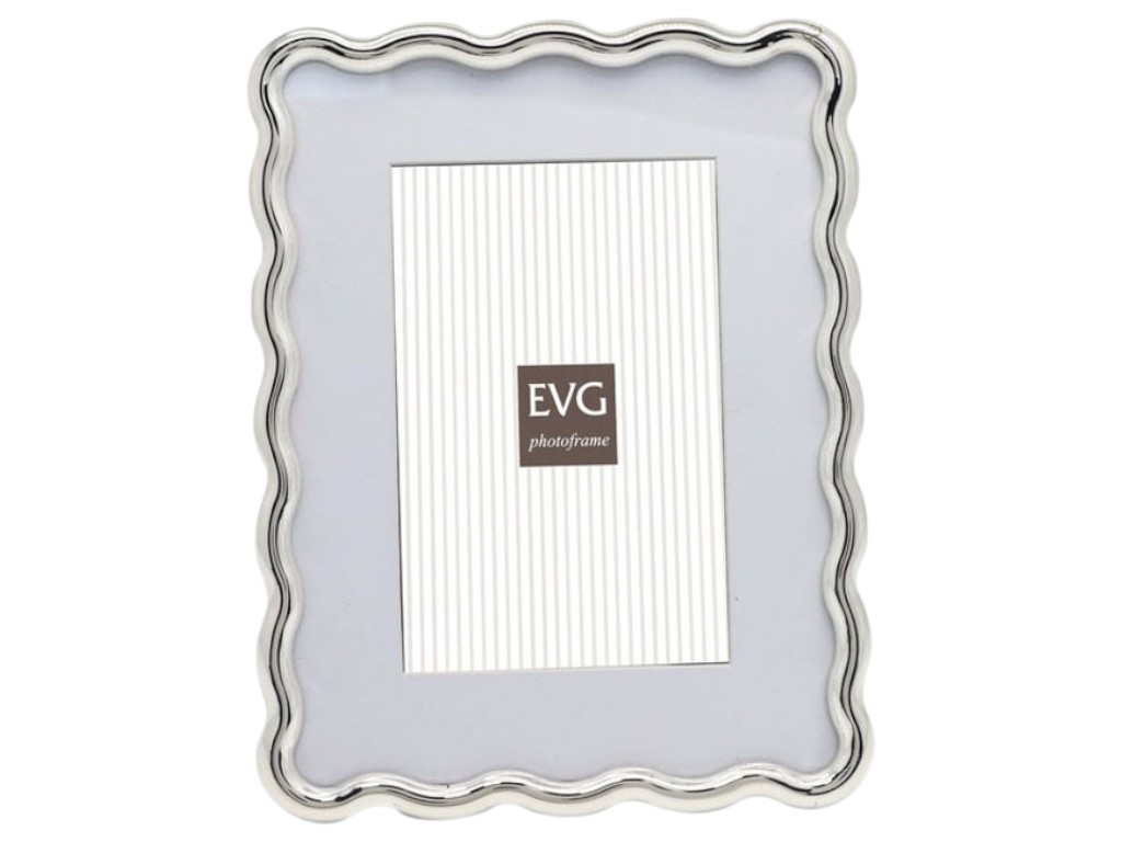 Рамка рассчитана на фотографию формата 15x20см и выполнена из металла с серебристым покрытием. Фигурные волнообразные края придают изделию выразительный и декоративный вид. С обратной стороны предусмотрена подставка для установки на стол и крепления для подвешивания на стену. Такая модель EVG подойдёт как для дома, так и для офиса.