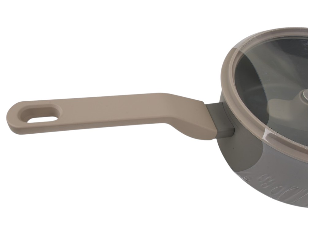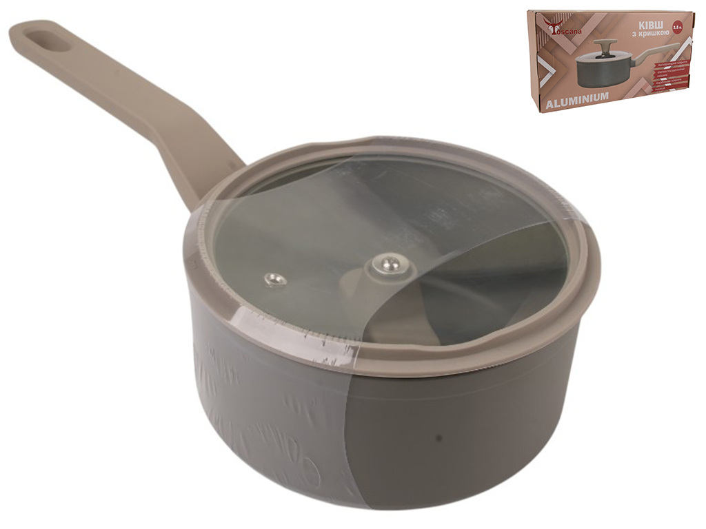 Ковш алюминиевый Alum, со стеклянной крышкой, диаметр 16,5см, высота 7,5см, дно 12см, 1,5л, серый