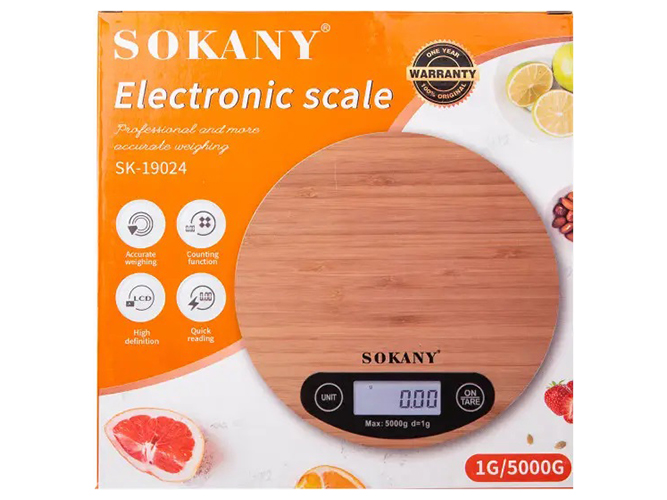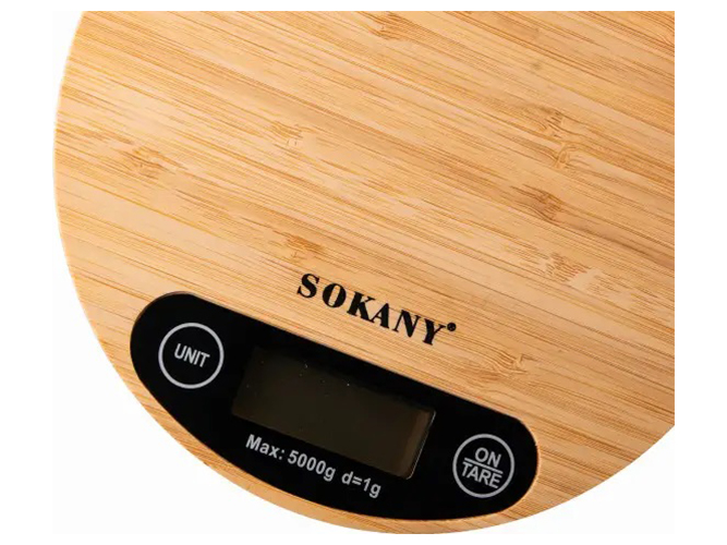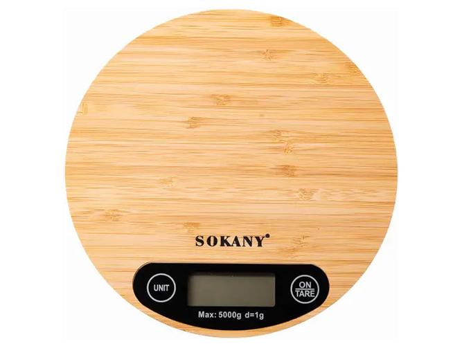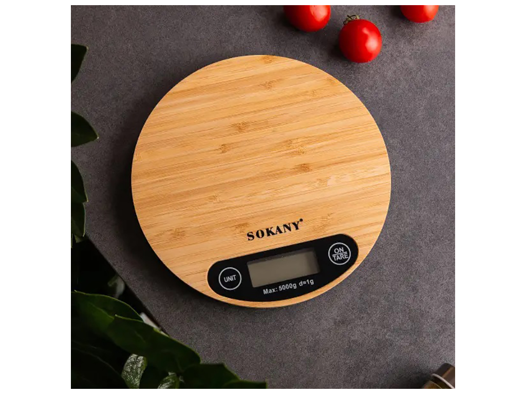 Весы кухонные Sokany, электронные, до 5кг, шаг 1г, круглые, 18,5×1,3см, цвет бежевый