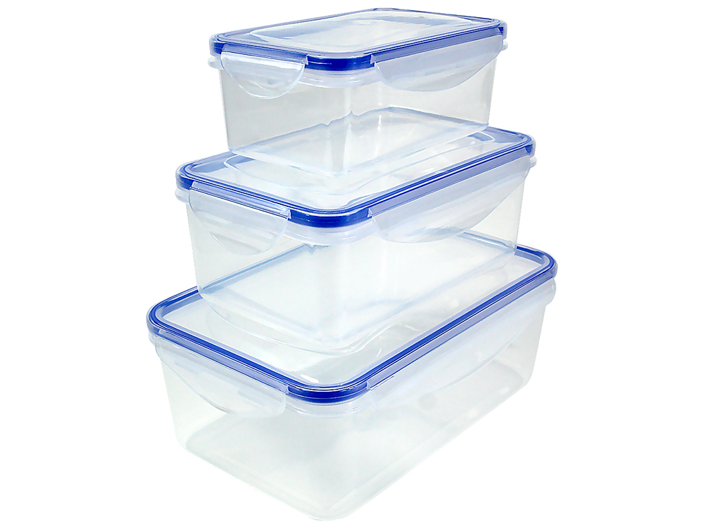 Набор контейнеров для хранения отличаются многофункциональностью, простотой и удобством. Они применяются для хранения еды и ношения обедов на работу или в школу. В качественной емкости для пищи продукты полностью сохраняют свои полезные свойства. Материал: пластик. В комплект входят 3 контейнера с крышками: 13,5x8,5x5,5см (400мл); 17x10,8x6,5см (800мл); 20,5x13x8см (1,2л). Можно мыть в посудомоечной машине. Можно использовать в СВЧ, хранить в холодильнике и морозилке.