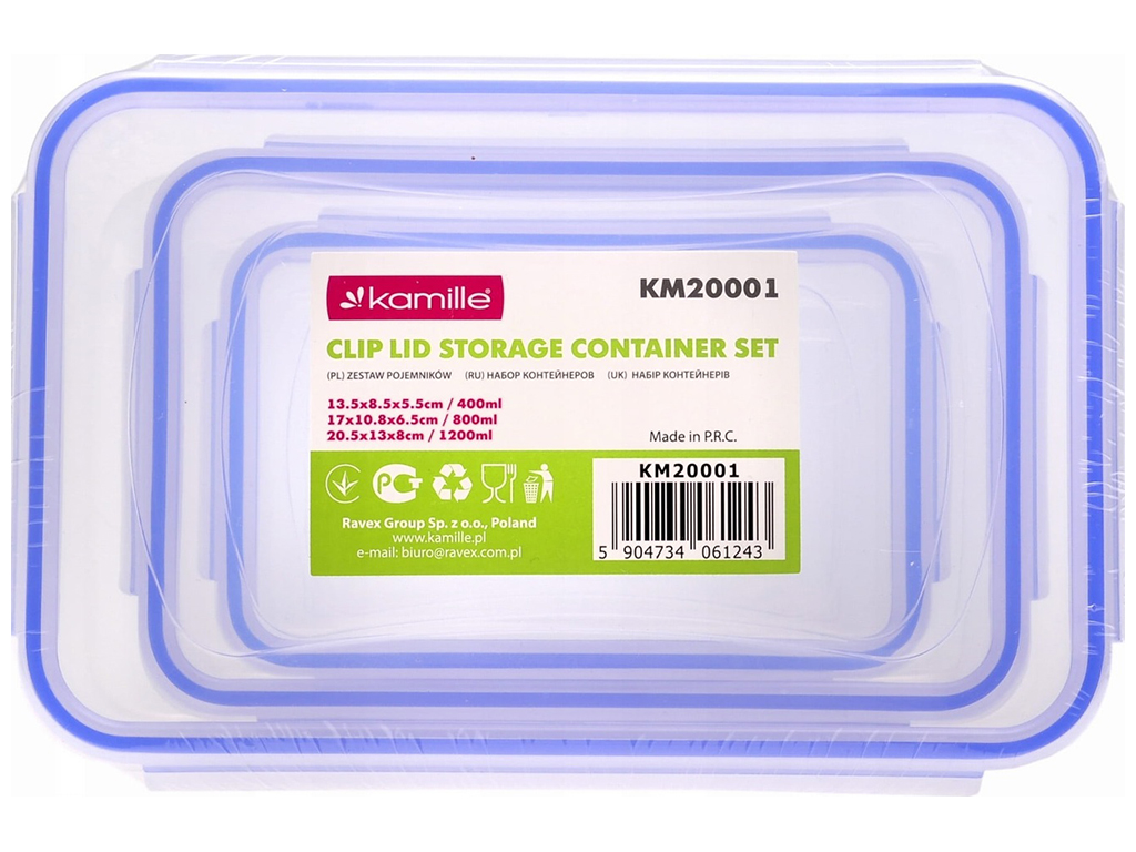 Набор контейнеров для хранения Kamille, пластиковые (цена за набор 3шт)