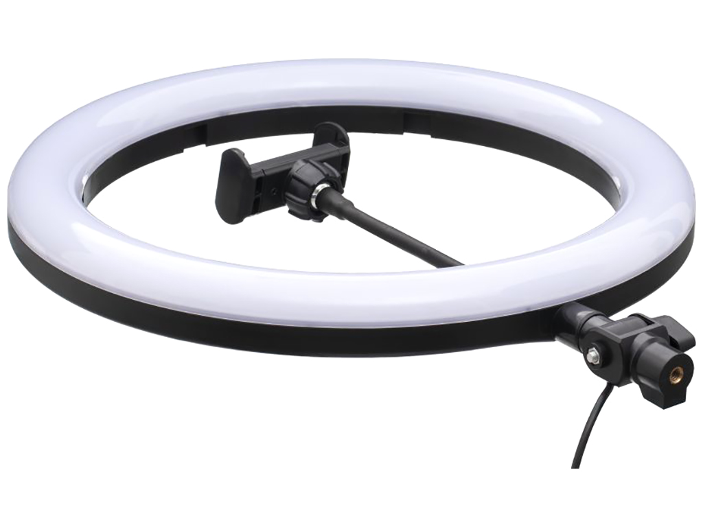 Лампа Fill Light 33см - практичный и бюджетный вариант профессионального кольцевого освещения. Внешний диаметр кольца - 33 см, внутренний - 24 см. Лампа имеет три режима типа освещения (теплый, холодный и комбинированный свет), а также регулировку яркости света. Управление обеспечивает встроенный в кабель пульт. За счет специального держателя в комплекте можно крепить телефон к лампе. Цветовая температура лампы - 3200 - 5500 К. С помощью шарнирного крепления лампу можно устанавливать в необходимом положении.