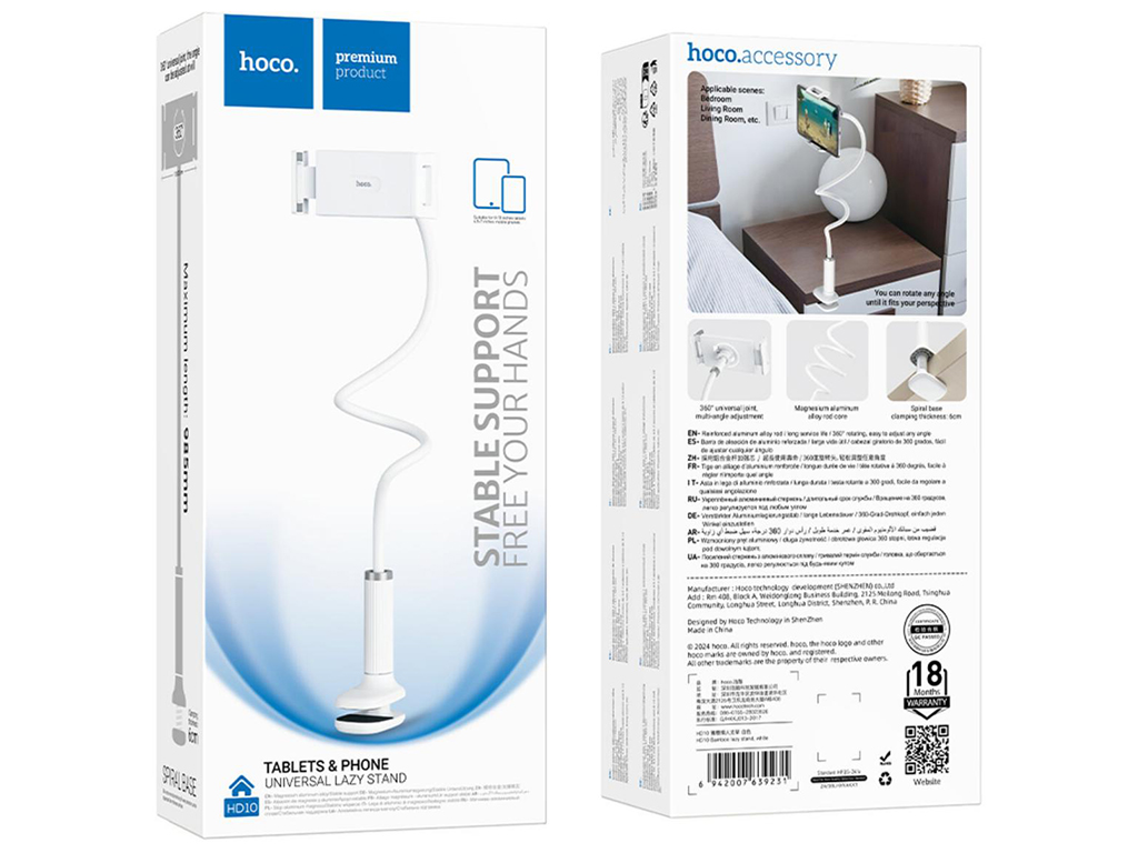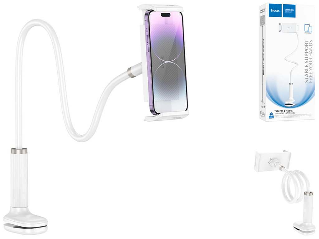 Универсальный держатель это идеальное решение для тех, кто стремится к удобству, функциональности и эстетике в одном аксессуаре. Гибкий штатив, который приобретает практически любую форму. Благодаря этому держатель можно зафиксировать в удобном положении - горизонтально, вертикально или даже под углом, что делает его незаменимым в самых разных ситуациях: при просмотре видео в постели, приготовлении пищи на кухне, видеозвонках в Zoom, чтении новостей или навигации в авто. Благодаря универсальной конструкции держатель совместим с устройствами шириной от 105 до 235 мм.