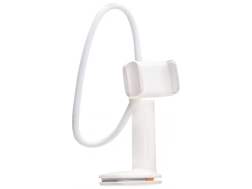 Конструкция: Гибкая ножка; Тип холдера: Для смартфона; Способ фиксации устройств: Прищепка; Место установки: Горизонтальная поверхность; Максимальная ширина захвата, мм: 90; Минимальная ширина захвата, мм: 54; Тип крепления держателя: На фиксаторе; Тип: Держатель; Длина ножки, мм: 630; Комплектация: Держатель; Глубина, мм: 82; Вес товара в упаковке, кг: 0.339; Вес товара без упаковки, кг: 0.244; Высота, мм: 263; Ширина, мм: 110; Материал корпуса: Пластик; Объем, м3: 0.002372; Цвет: Белый;