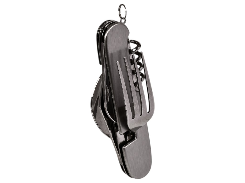 Мультитул туристический 6в1, ложка, вилка, ножи, штопор, открывалка, нержавеющая сталь, 11см