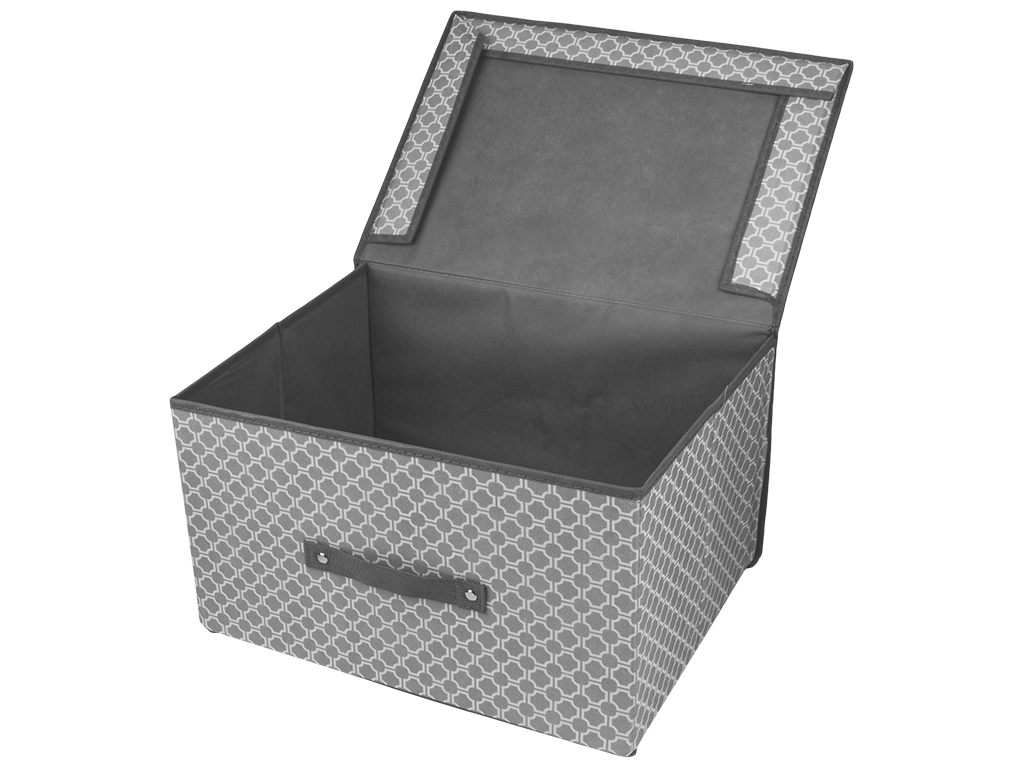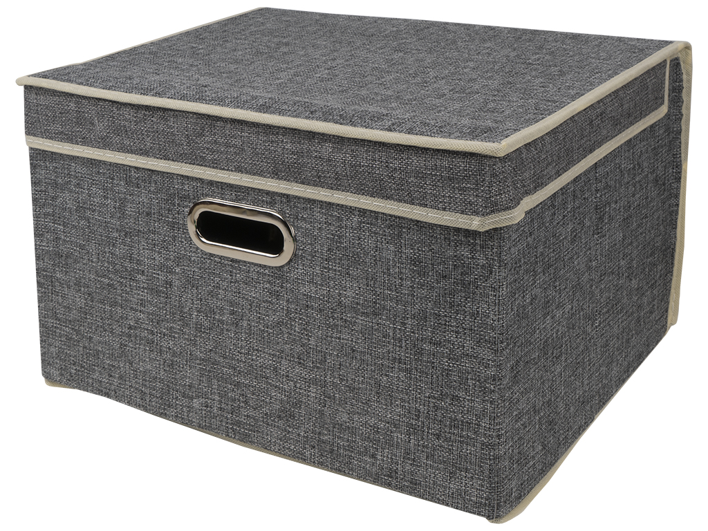 Размер: 40х30х25см. Материал: нетканое полотно с принтом под мешковину, картон. Цвета ассорти. Коробка-органайзер ПВХ для хранения белья. Крышка откидная не снимается, закрывается на одну липучку. На тыльной стороне расположена ручка. Поставляется в пакете.