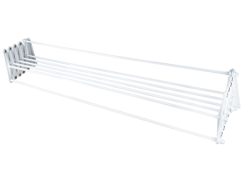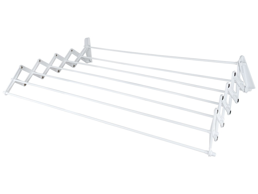 Транспортировочный размер: 83,5x13x14см. Рабочая длина сушилки: 80см. Состоиз из 7 проволок. Диаметр: проволок D1см. Максимальная нагрузка: 15кг. Материал: пластмасса. Цвет: белый. Настенная раздвижная сушилка для белья крепится на одну из стен ванны, балкона или на улице с помощью саморезов и дюбелей (в комплекте). Такую сушилку можно разместить как на внутренней стене балкона, так и на внешней. Вам уже не нужно растягивать веревки от стены до стены, забивать гвозди и мучатся с их регулировкой. Размещается она с помощью крепления панели к стене на любой высоте и в любом удобном месте — от ванной до наружной части балкона. Этот вариант можно использовать и для других целей — в кладовке, гараже, коридоре и в качестве вешалки.
