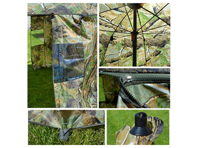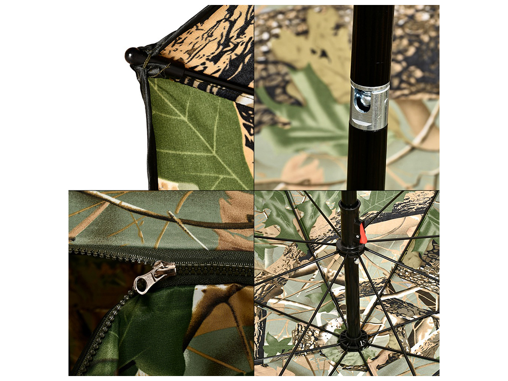 Материал ножки: металл. Материал спиц: металл. Диаметр купола 172см, диаметр ткани купола в 220см, высота ножки 208см, глубина купола 50см, высота тканевой стенки 128см, длина тканевой стенки 350см. Зонт в чехле 10х10х122см, стенка в чехле: 9х9х20см. Комплектация: зонт, ножка-удлинитель, стенка тканевая с двумя окнами(пристегивается на молнию), 8 колышков, чехлы (для зонта, стенки, колышков). Ножку можно сгибать в верхней части, что позволяет поворачивать купол до вертикального положения. Отличное качество. Современный дизайн. Возможность наклона зонта. Зонт-палатка имеет достаточно широкий диаметр ткани купола в 220см, что позволяет с комфортом расположится 2 рыбакам и беспрепятственно манипулировать снастями. Высококачественный водонепроницаемый материал с покрытием для защиты зонта от ультрафиолетовых лучей.