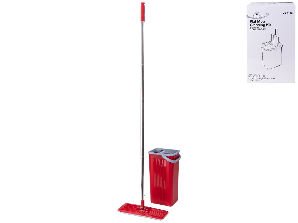 Швабра плоская с ведром, отжим, телескопическая ручка, микрофибра, металл, пластик, 130×33×12см