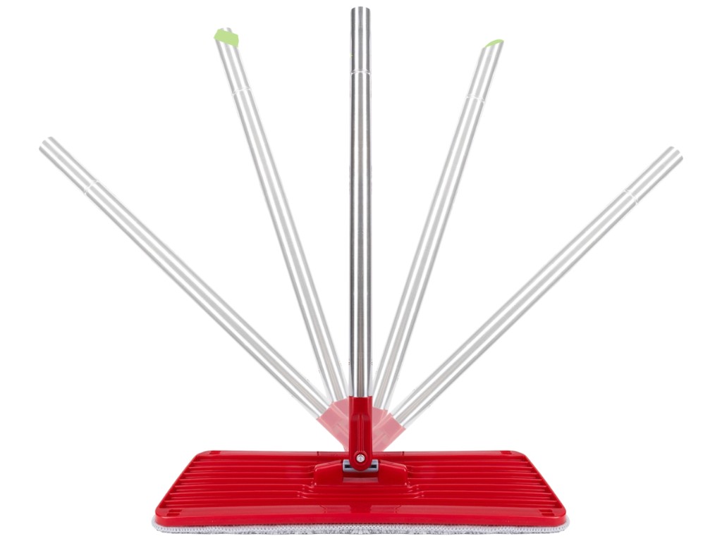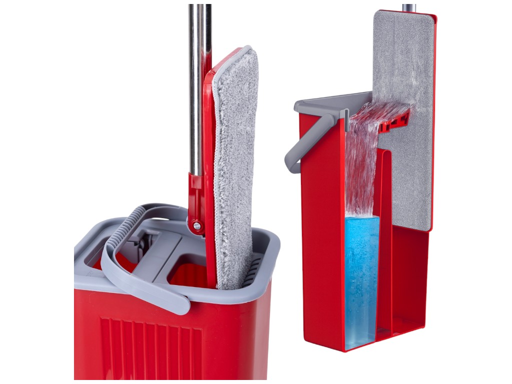 Плоская швабра с двухкамерным ведром создана для удобной и гигиеничной уборки без лишних усилий. Конструкция с раздельными отсеками для чистой и грязной воды помогает сохранять порядок и ускоряет процесс мытья полов. Одна камера используется для ополаскивания насадки, другая — для её отжима, при этом руки остаются сухими. Рабочая часть швабры оснащена плоской платформой, к которой крепится сменная насадка из микрофибры. Она мягко собирает пыль, воду и грязь, не оставляя разводов и не царапая поверхность. Телескопическая ручка из металла регулируется по длине и складывается, что удобно при хранении. Поворотное крепление головки на 360° помогает убирать под мебелью и в труднодоступных местах. Ведро выполнено из прочного пластика, устойчивого к влаге и механическим нагрузкам. Конструкция отличается устойчивостью и лёгкостью — вес комплекта около 1,5 кг. Насадку из микрофибры можно стирать вручную или в машине при температуре до 40°C. Швабра подходит для уборки плитки, паркета, ламината, линолеума и других гладких напольных покрытий. После использования рекомендуется ополаскивать насадку и хранить швабру в сухом месте.