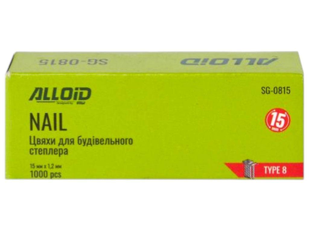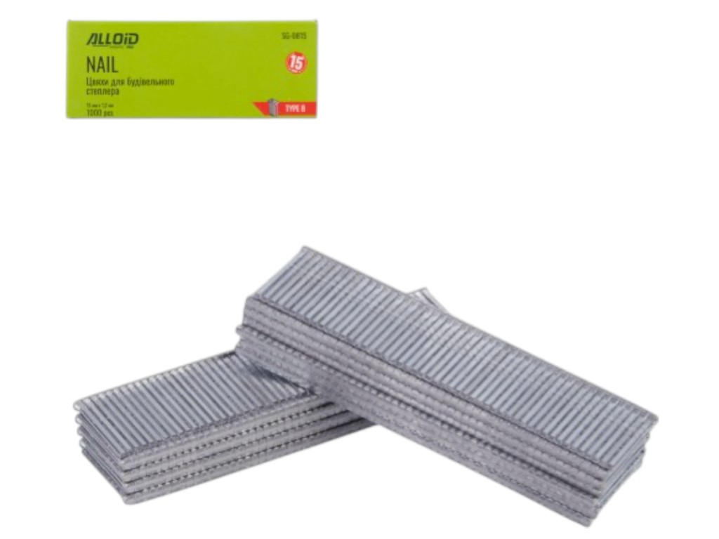 Гвозди для степлера Alloid Pro, тип 8, 15 мм х 1.2 мм, 1000 штук, цвет серебристый