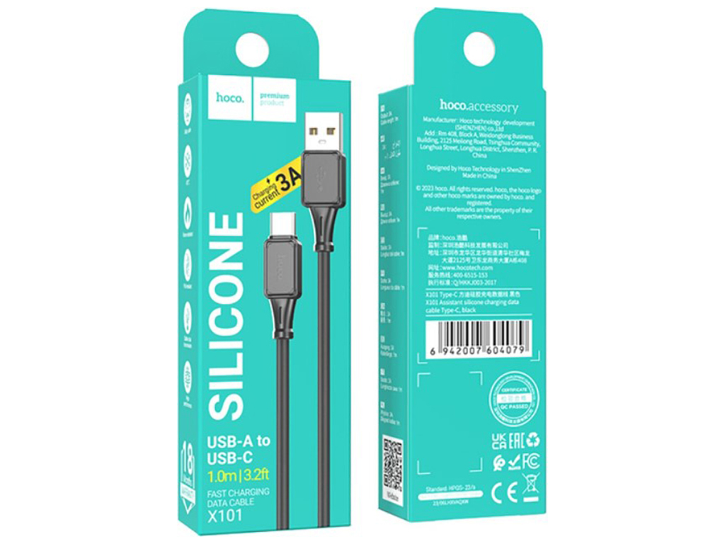 Кабель USB Hoco X101 Assistant Silicone Type-C 3A оптимальные технические характеристики обеспечивают его востребованность и совместимость с большим количеством устройств. Он может использоваться для зарядки совместимых гаджетов с максимальной силой тока 3A и их подключения к компьютеру для синхронизации. Внешняя оплетка кабеля изготовлена из силикона, который выделяется абсолютной безопасностью для человека, стойкостью к разрывам, открытому огню, экстремально низким и высоким температурам. Ее высокая эластичность предотвратит спутывание во время хранения и транспортировки. Корпуса его никелированных коннекторов выполнены методом литья под давлением из прочного пластика. Защита от изломов в местах их соединения с кабелем дополнена перфорацией для обеспечения большей гибкости. Четырехжильный сердечник кабеля толщиной 3.6мм защищен качественным экранированием, состоит из 116 медных проводников (43/0.08*2+15/0.08*2). Установление соединения между устройствами осуществляется через USB-A (мale) – Type-C (мale).