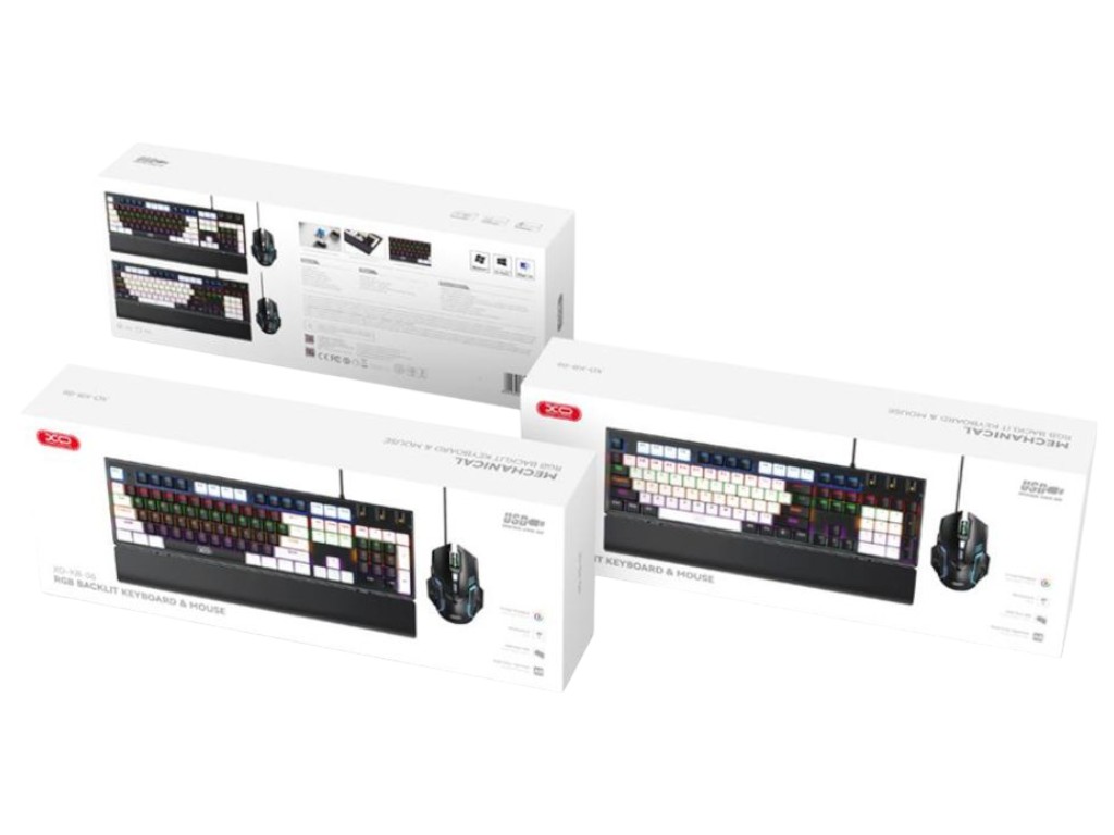 Клавиатура и мышь XO KB-06, механические клавиши, Rgbподсветка, симметричная форма, цвет черный микс