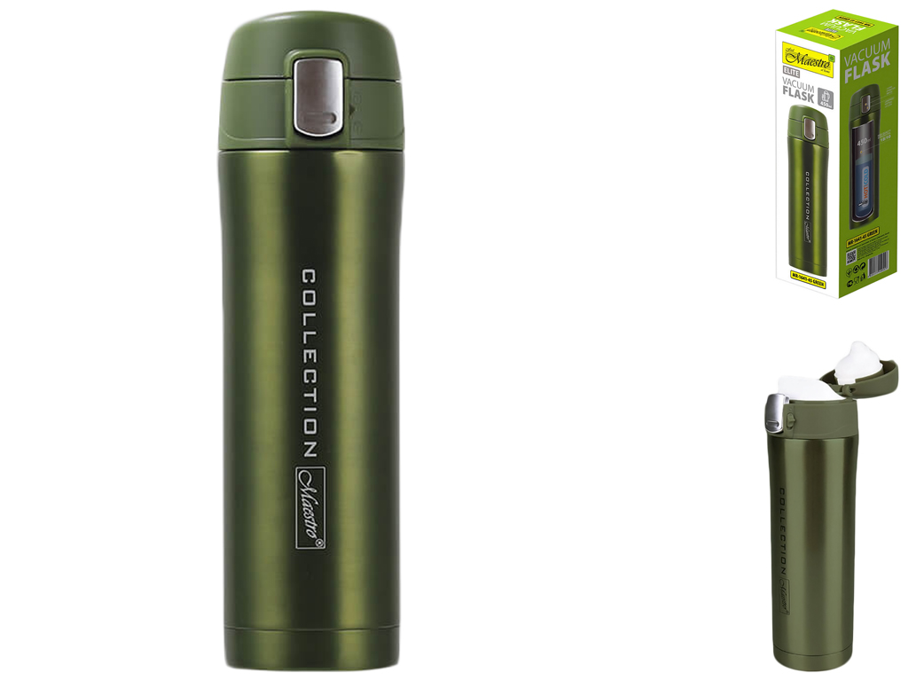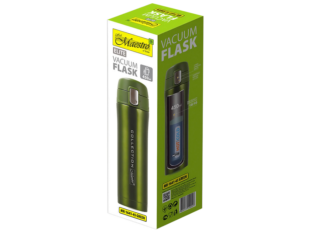 Объем: 450мл. Высококачественная нержавеющая сталь. Горячая вода в течение 24 часов. Изолированный-вакуум сосуд. Простота в очистке и уходе. Диаметр дна: 6см.