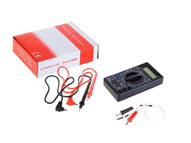 Цифровой мультиметр (DT-838) предназначен для измерения постоянного и переменного напряжения, силы тока, температуры, сопротивления, проверки диодов и транзисторов, прозвонки цепи. Мультиметр имеет звуковую прозвонку цепи и возможность измерения температур, термопара входит в комплект.