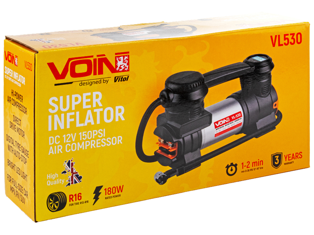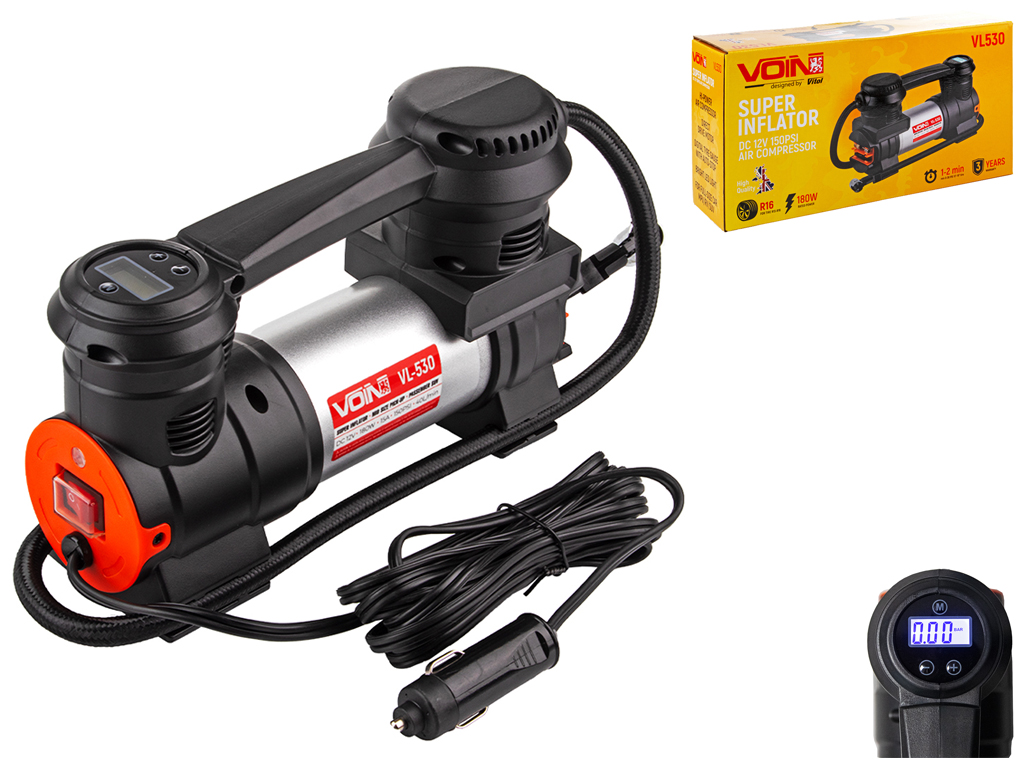 Компрессор автомобильный VOIN VL-530 150psi/15A/40л/Автостоп/прикуриватель/фонарь (VL-530)