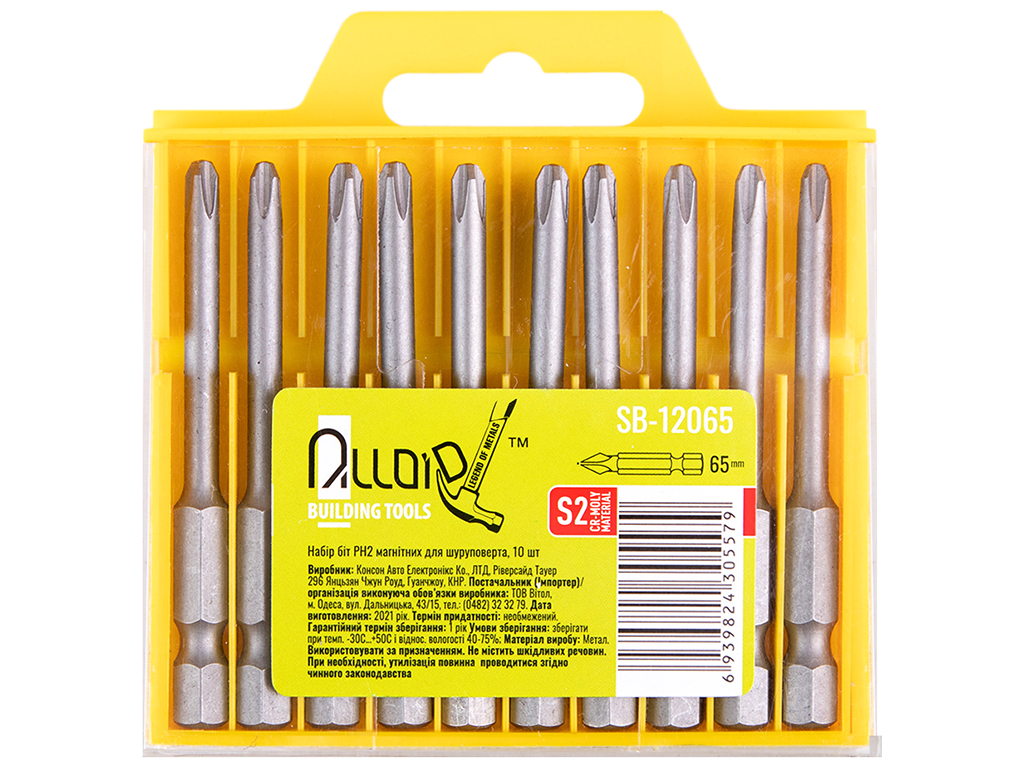 Набор бит магнитных для шуруповерта Alloid, PH2 65мм, S2, SB-12065 (цена за набор 10шт)
