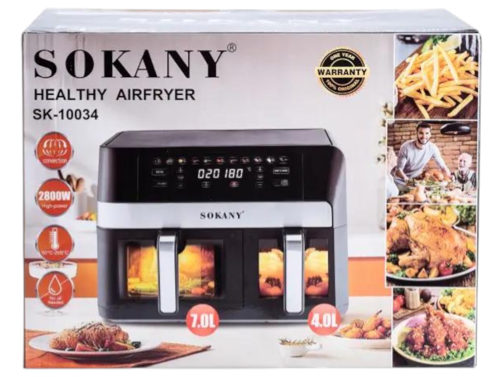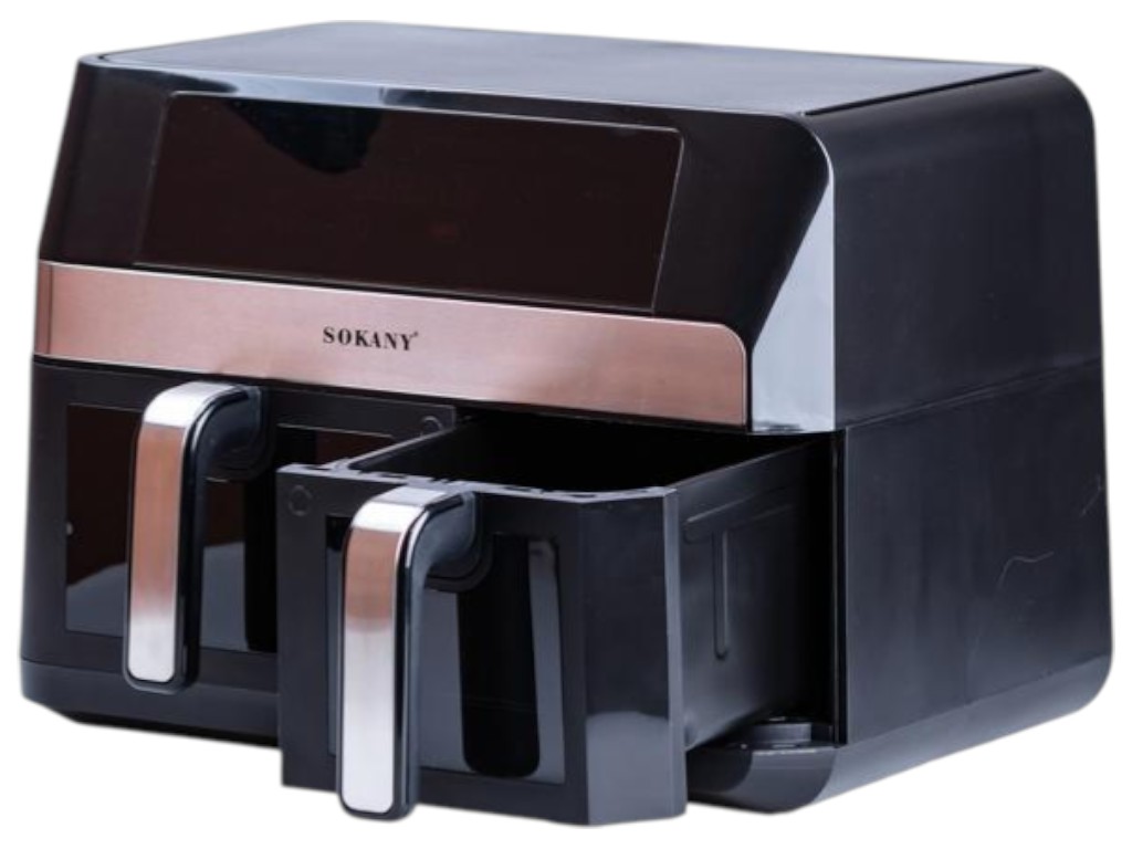 Оснащён двумя съёмными чашами объёмом 7 и 4 литра, мощным нагревательным элементом 2800 Вт и сенсорной панелью управления. Позволяет задавать температуру от 80 до 200 °C и устанавливать таймер до 60 минут. Внутренние поверхности имеют антипригарное покрытие для облегчения очистки. Подходит для одновременного приготовления нескольких блюд.