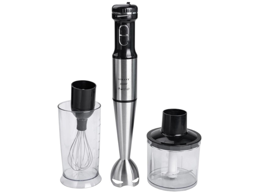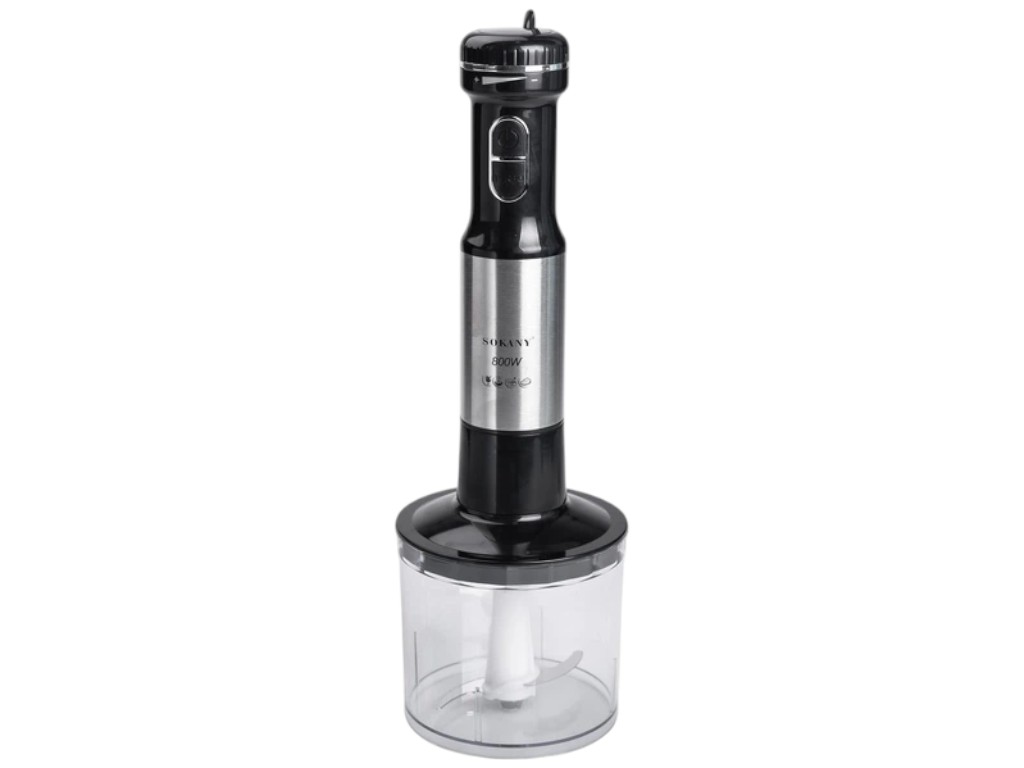 Блендер Sokany, погружной, венчик, измельчитель, металл, пластик, 800Вт, 600мл, цвет серебристый