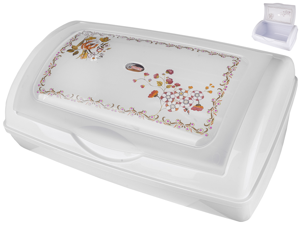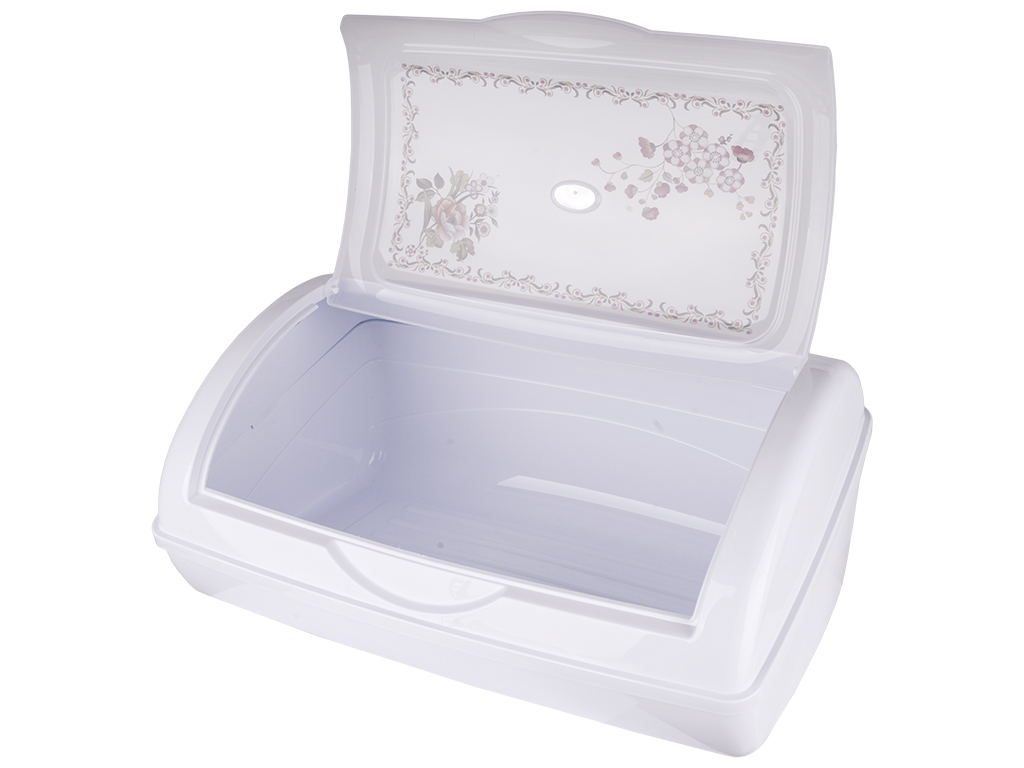 Размер: 36х24х16,5см. Транспортировочный размер: 36х24х11см. Цвет: белый. Материал: пластмасса. Тип крышки: откидная. Декор: рисунок цветы.