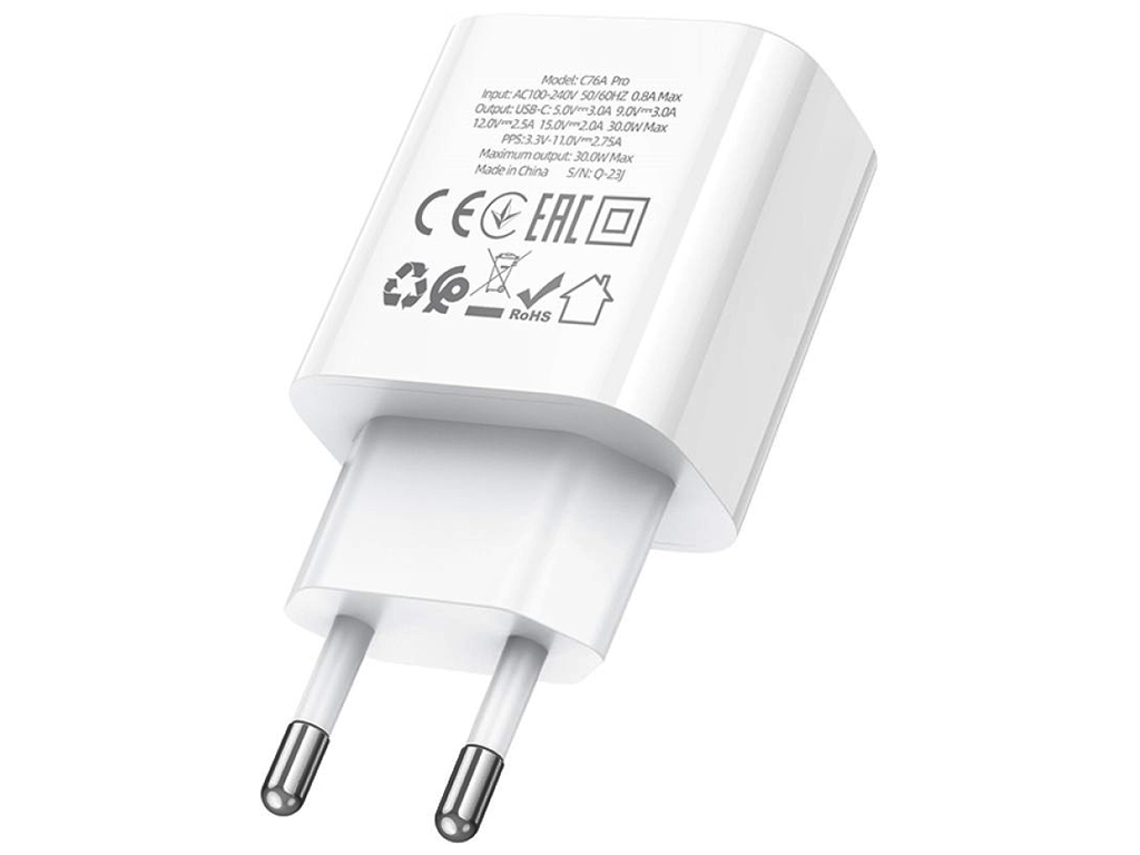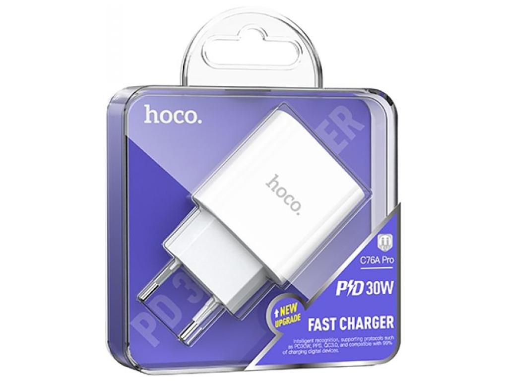 Сетевое Зарядное Устройство Hoco C76A Pro 1Type-C PD/QC 30W, Цвет Белый