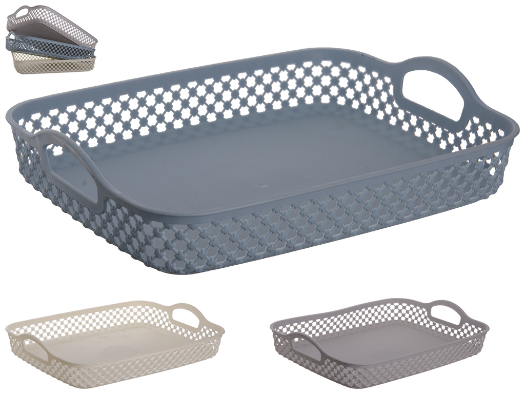 Размер: 25,2х22,6х6,5см. Высота без ручек: 5см. Материал: пластмасса. Цвета: молочный, светло-серый, серо-голубой. Корзина-плетенка для белья с ручками хорошая и незаменимая вещь для хозяйства.