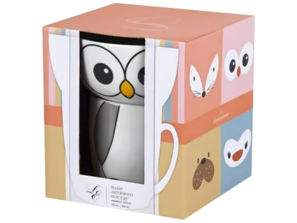 Размер упаковки: 14x14x15,5см. Размер пиалы: 14x14x6,5см. Размер чашки: 9,5x12,5x9см. Набор детской посуды Limited Edition Happy Owl с оригинальным дизайном привлечет внимание ребенка и сделает еду увлекательной и интересной. Изготовлен из качественного и безопасного фарфора. Гигиенический и экологичный материал, не впитывающий запахи и не окрашиваемый. Посуда обладает высокой стойкостью к механическим повреждениям, надолго сохраняет свой безупречный внешний вид. Можно использовать в СВЧ-печи и мыть в посудомоечной машине. В наборе: пиала 430мл (1шт), чашка 300мл (1шт).