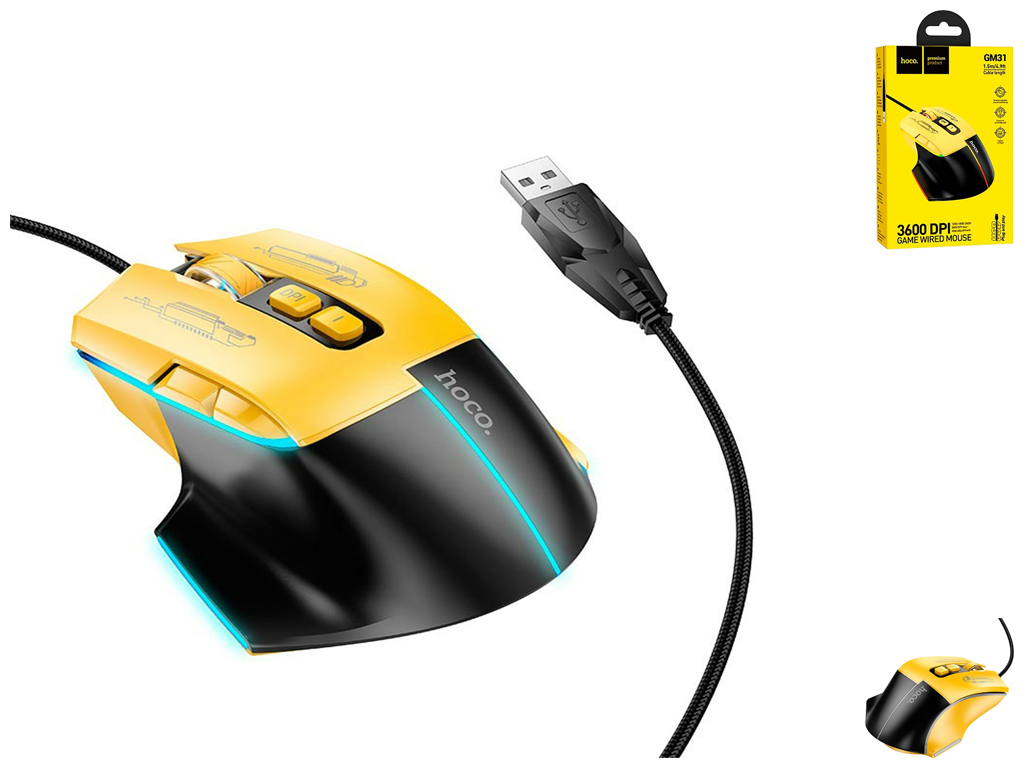USB Мышь Игровая Hoco GM31 Overlord luminous Цвет Черный желтый