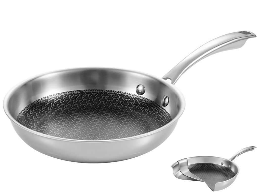 Сочетает в себе преимущества классических стальных сковородок без антипригарной поверхности с плюсами сковородок с антипригарным покрытием. Быстро и равномерно распределяет тепло от плиты по всем частям поверхности. Уникальная антипригарная поверхность с рельефной нержавеющей решеткой обеспечивает интенсивную и равномерную жарку без подгорания. Благодаря тонкой стальной решетке во время запекания мяса образуется идеальная хрустящая корочка, а карамелизированная зажарка отлично подходит для приготовления соусов. Антипригарная поверхность устойчива к металлическим кухонным инструментам, сковороды подходят для всех типов плит, включая индукционные. Благодаря цельнометаллической конструкции и водонепроницаемой ручке из нержавеющей стали, сковороды SteelCRAFT можно использовать для запекания пищи в духовке.