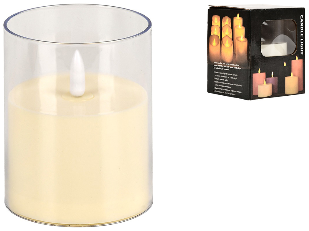 Свеча декоративная светодиодная дополнит современный интерьер и создаст уютную атмосферу. Светодиодная свеча светит приятным и абсолютно безопасным светом. Питание: батарейки 3шт х ААА (не входят в комплект). Упаковка: цветная коробка.