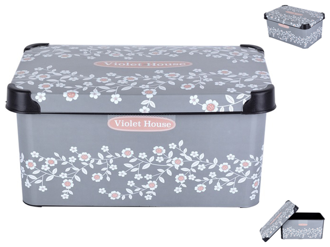 Корзина с крышкой Violet House 0647 Decor Antracite Flowers, 10л, 2068228590015